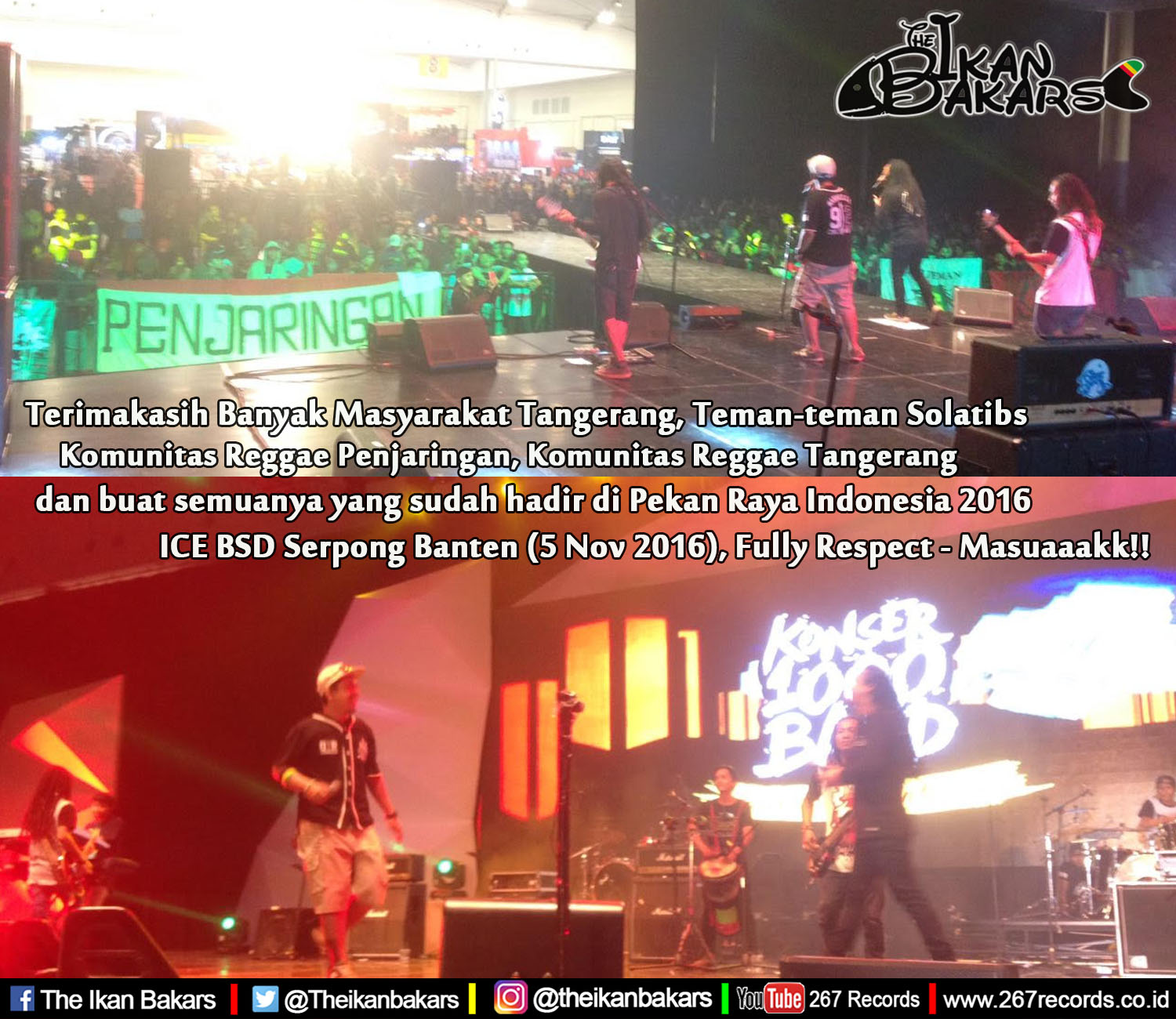 Terimakasih banyak buat Solatibs, Komunitas Reggae Penjaringan, Komunitas Reggae Tangerang Banten dan Masyarakat Banten yang sudah hadir berdansa Reggae Hip hop bersamam kami Kemaren 5 November di ICE BSD Serpong Banten Pekan Raya Indonesia 2016.. Fully Respect, Masuuaakk!!!
